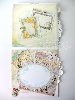 I'm trying to work on my my pastel coloring, and make cards using colors and papers lighter than I usually like. For today's card I chose Magnolia Tilda with a Cute Lamb. This stamp is actually from Christmas collection, but I've added a stamped scene with butterflies behind the main image, and it looked to me like a very pretty summer :)