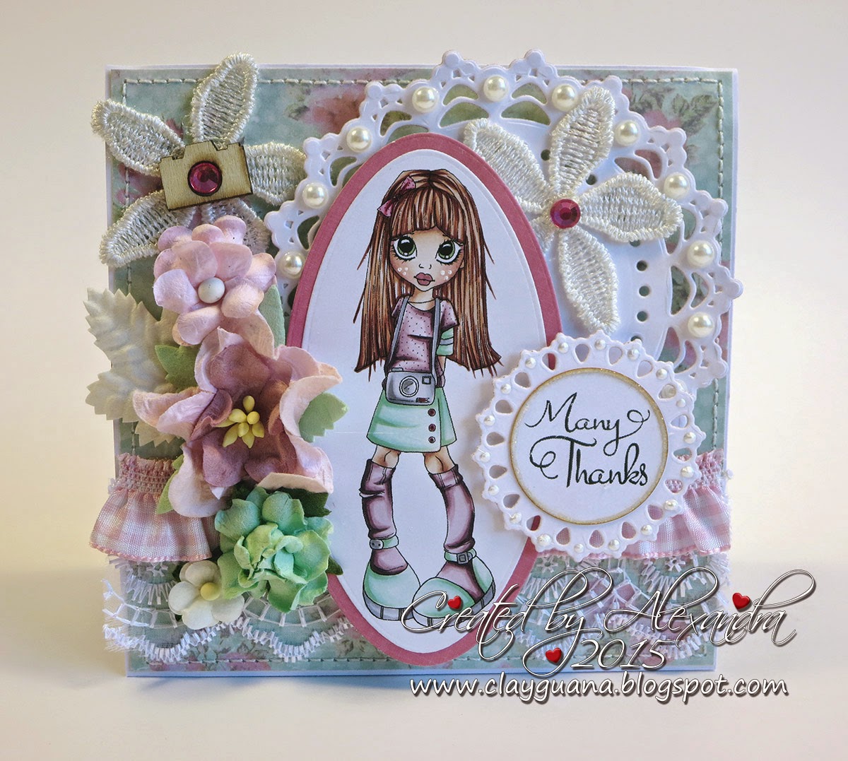 The first card I would like to share is featuring "Gwen" from the Dollhouse Collection, as well as Everyday Sentiments and the Dewdrop Circle Die: