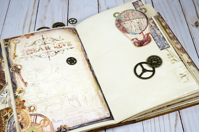 The journal has a shaker on the spine, which I really wanted to fill with cogs. I hope you like the idea!