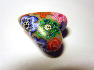 К Марси я пошла учиться делать бусины, полые внутри. Эту я сделала, воспользовавшись красивейшими цвточными колбасками ее изготовления: